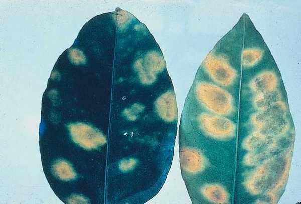 Thường xảy ra trong môi trường đất chua. Triệu chứng đặc trưng nhất là những đốm vàng lớn xuất hiện trên lá vào mùa xuân, sau một thời gian, hình dạng của những đốm vàng này sẽ trở nên rõ rệt hơn.