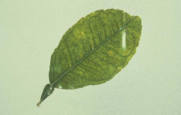 Lá chanh mất chất diệp lục do thiếu hụt dinh dưỡng.