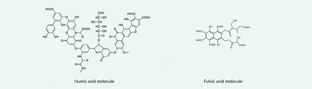 Axit humic là những phân tử lớn hoạt động tốt nhất trong đất để cung cấp một môi trường phát triển tối ưu. Axit fulvic là những phân tử nhỏ hơn nhiều, hoạt động tốt trong cả đất và lá, nơi chúng chuyển các chất dinh dưỡng quan trọng qua màng tế bào của thực vật. Cả 2 chất này hoạt động song song với nhau để thúc đẩy sự sinh trưởng của cây trồng và giúp tăng năng suất hiệu quả.