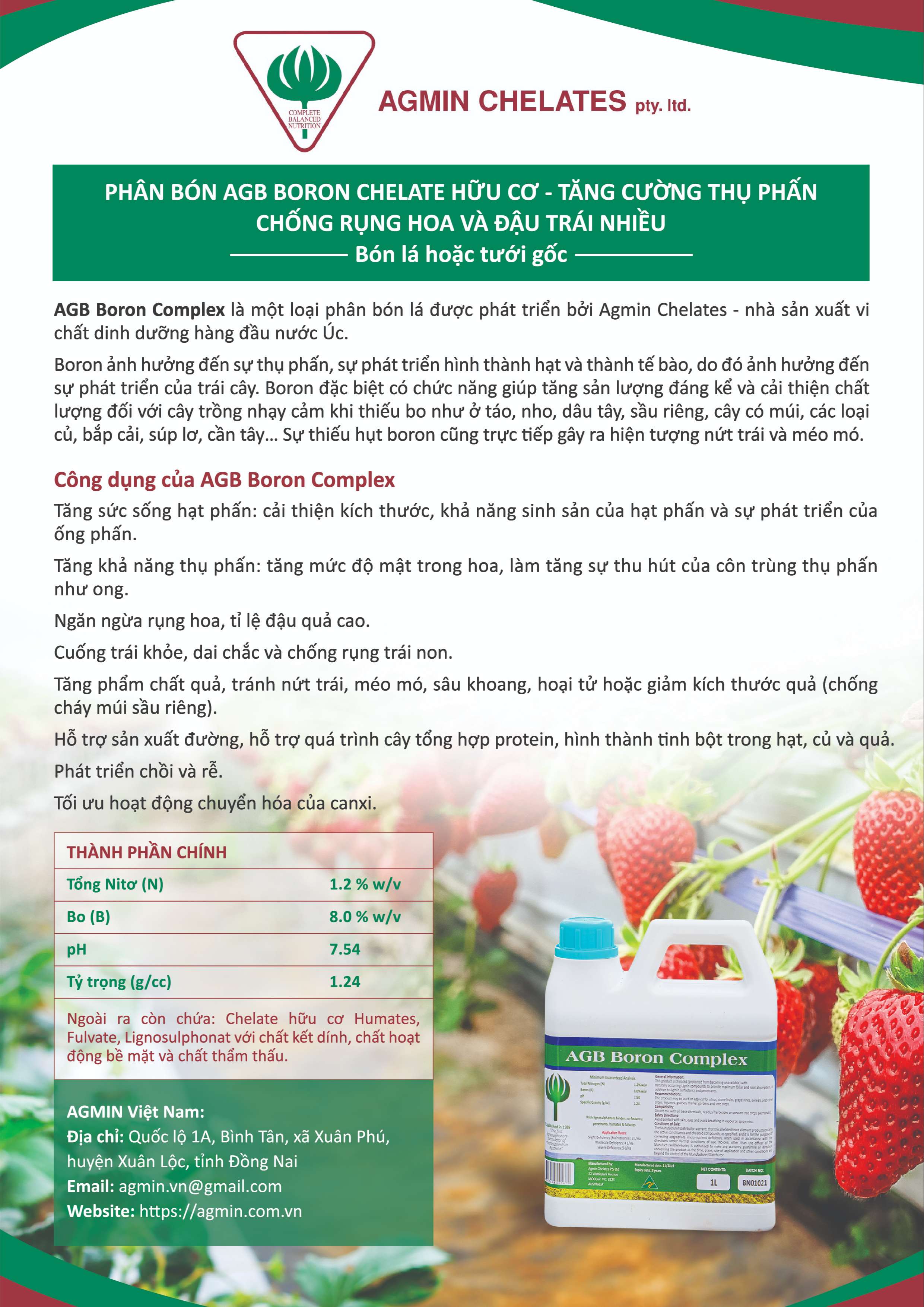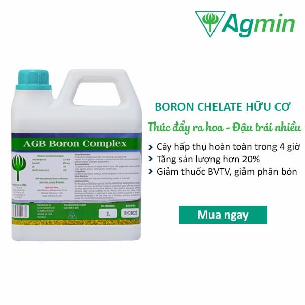 AGB Boron Complex là một loại phân bón lá được phát triển bởi Agmin Chelates - nhà sản xuất vi chất dinh dưỡng hàng đầu nước Úc.